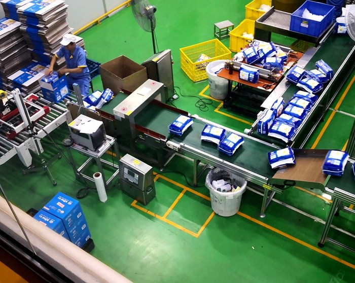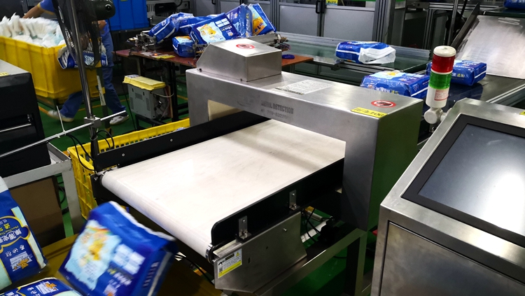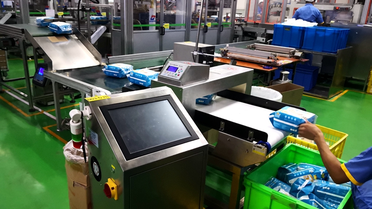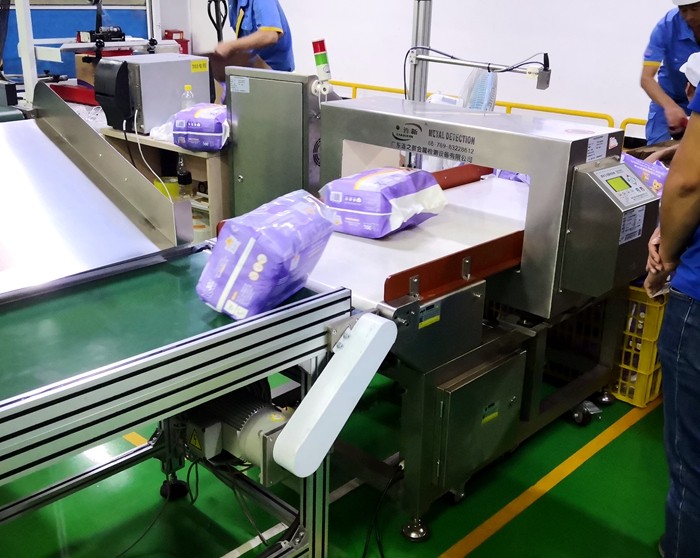 以下為漢氏衛生用品紙尿褲生產線使用連之新金屬檢測機的部分現場: