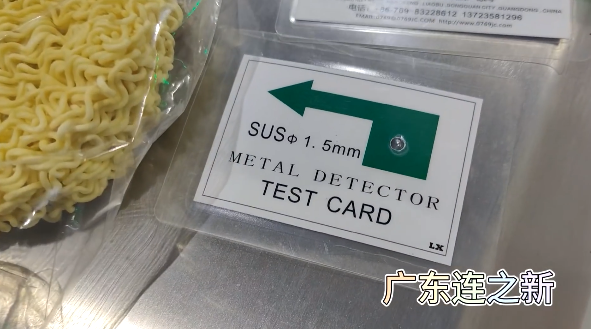 當方便面含有不銹鋼、鐵、銅等金屬時,廣東連之新金檢機發出鳴叫,紅燈閃爍。